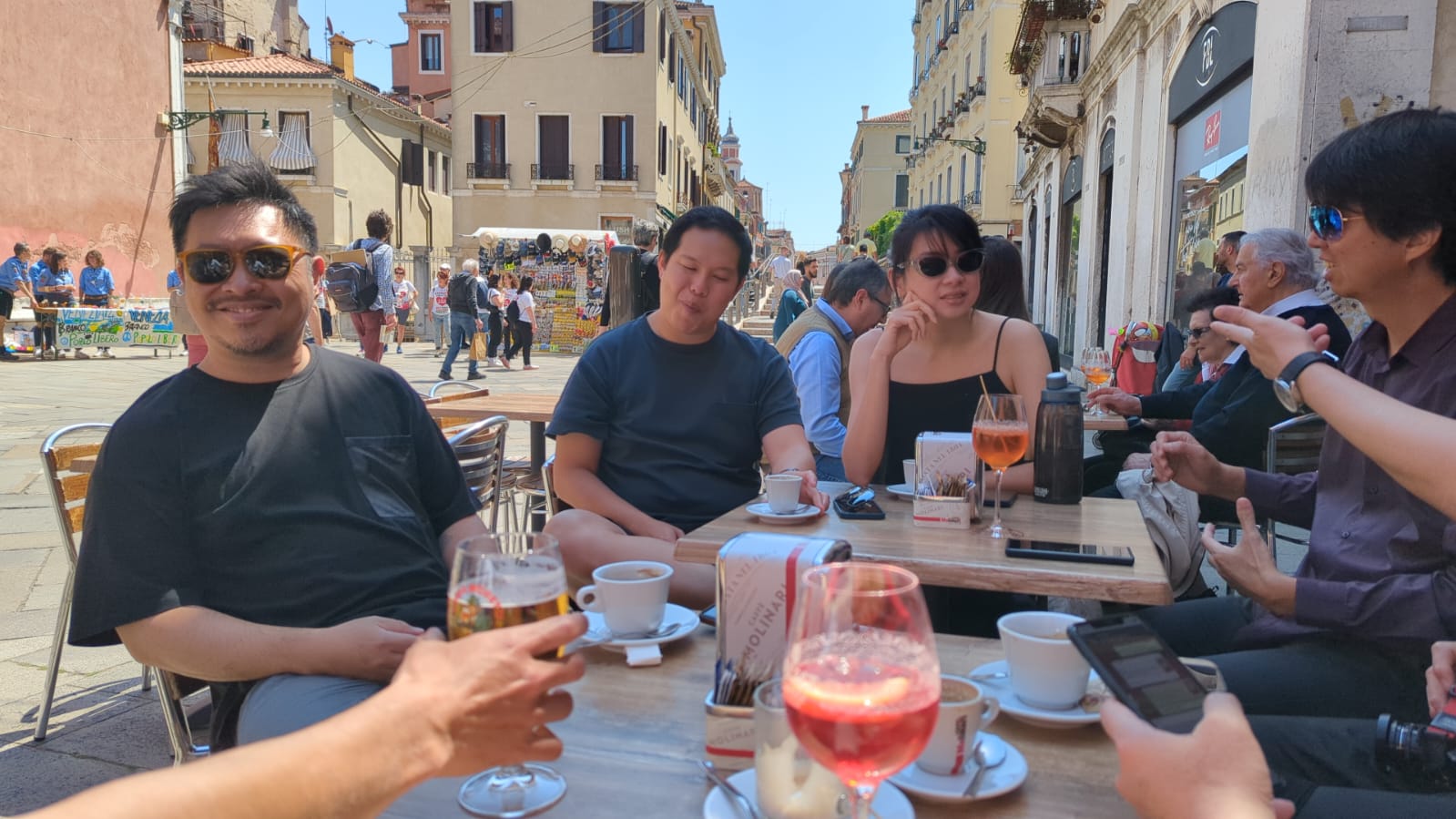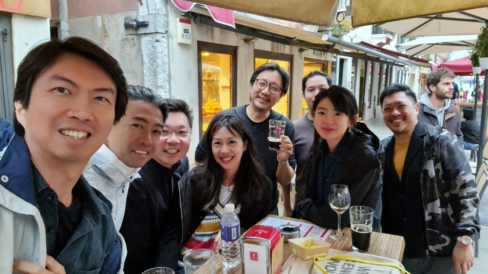 A celebratory get together in Venice to conclude the opening of Venice Biennale. Raising a toast to the curators of 2023 Singapore pavillion!
